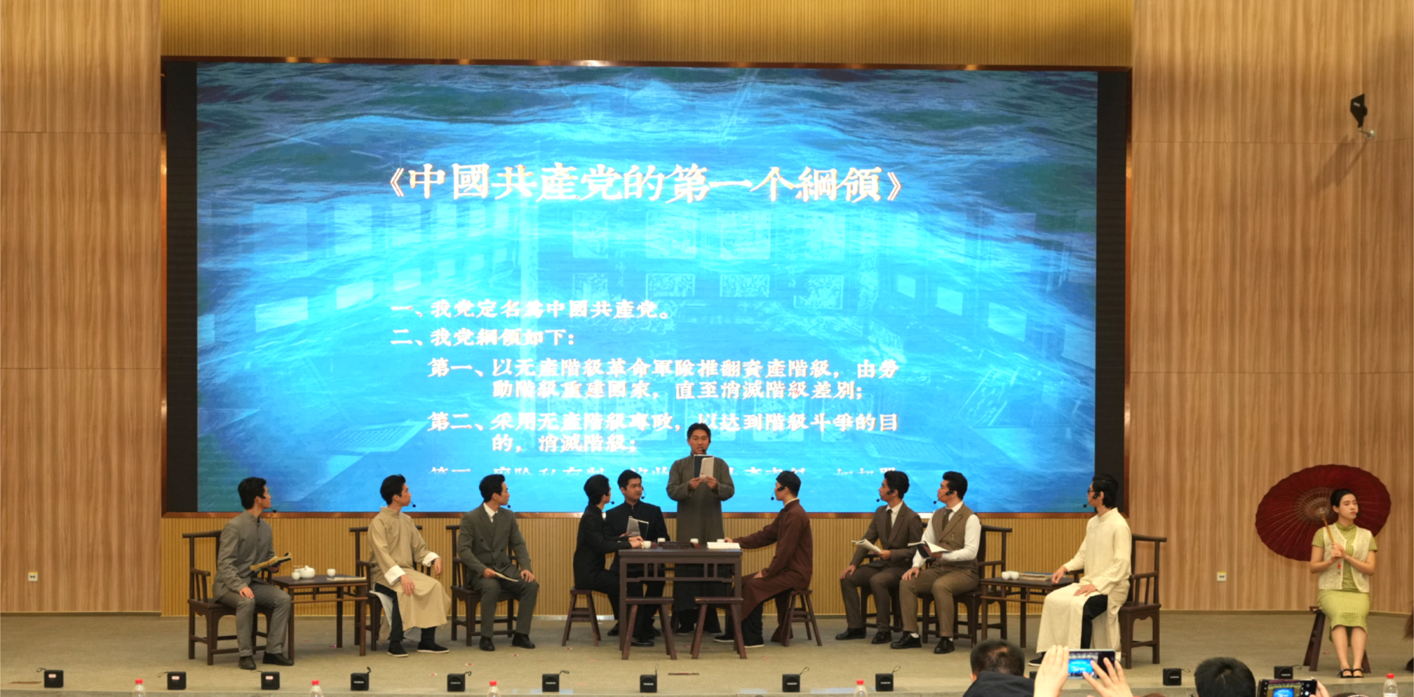 会上,嘉兴大学学生现场表演红色话剧《初心》片段,以“沉浸式”演绎引领全场观众重温中国共产党成立的伟大时刻,使红船精神与建党初心的信仰力量直抵人心,在艺术形式中实现了红色基因的生动传承。