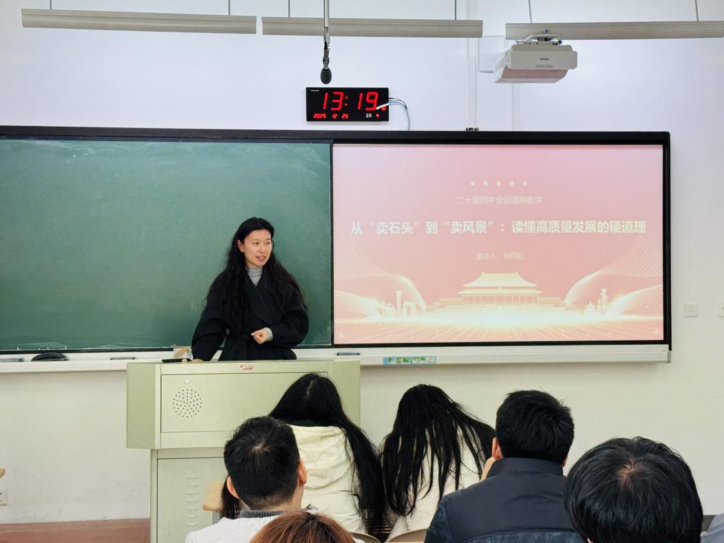 12月17日宣讲会上,学校学习贯彻党的二十届四中全会精神宣讲团成员、小黄书