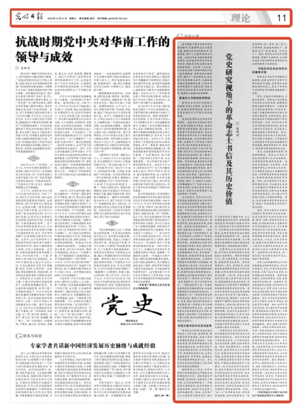张新洲副教授撰写的理论文章《党史研究视角下的革命志士书信及其历史价值》,于2025年12月31日在《光明日报》理论版发表。这篇近4000字的学术力作,是小黄书